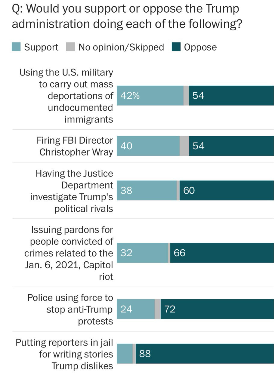 The poll released this week by the Washington Post may surprise some who are drawn to the high numbers that support authoritarian moves by the incoming president. They would be wrong to focus only on this…what I saw was something different.